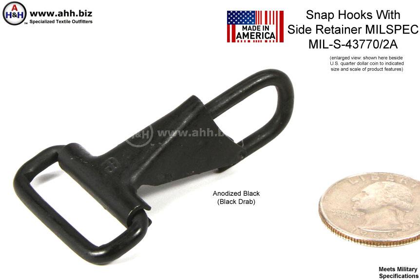 Search Terms / Also Called: snap hook, webbing hook, military webbing hook, webbing clip, webbing hardware, MIL-S-43770-2A