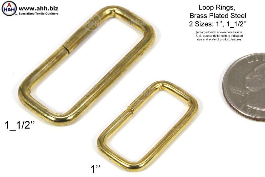 Gold colored, Brass plating on machine-formed, solid steel round stock gives these Loop Rings strength and corrosion resistance. Loop Rings are used to join two webbing loops together while allowing slippage for adjustment. Common applications include webbing belts and carrying straps where adjustment is often needed. Not intended for life safety devices.
